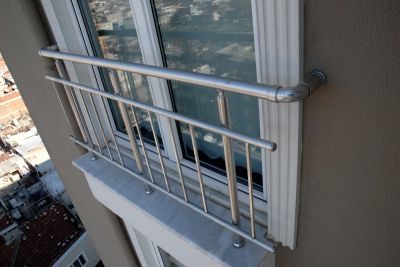 | Fransız balkonlara uygulanan camlı, dikey çubuklu, yatay emniyet şeritli küpeşte korkuluk modelleri... | ||